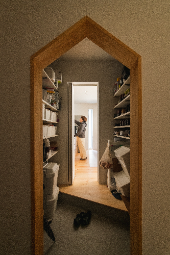 買い物帰りの荷物を運ぶことを考慮し、シューズクロークからキッチンへ繋がる動線に。家事動線もコンパクトで、機能的な設計になりました