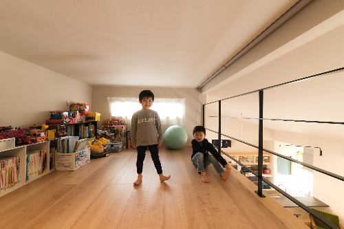 ロフトで遊ぶ子どもたちを、キッチンから見守れるレイアウト