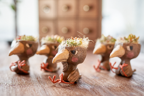 県外作家のアクセサリーや、韓国初の子供服など、ジャンルも豊富!各種、季節ごとに入れ替えしながら販売中。高知県の作家の作品「ハシビロコウ」の鉢植えは入荷したら即完売するのだとか!