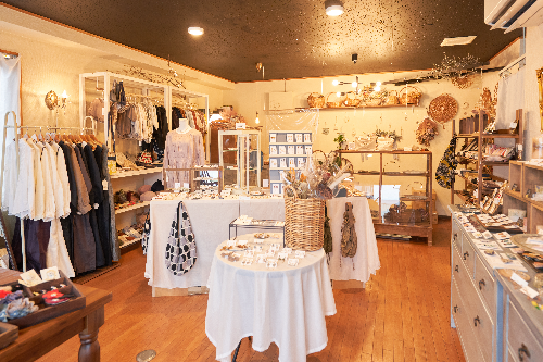 大通りからちょっと入ったところに佇む小さな雑貨屋「小花縁」。作家歴10年の店主が自ら丁寧に制作しているオリジナル作品をはじめ、県内外で活動している20人ほどの作家の作品も販売しており、アクセサリーだけでなく服やベビー用品、焼き菓子やインテリア雑貨など、眺めるだけでも楽しくなる商品が豊富に揃っている。手頃な価格の雑貨も多く、ラッピングも無料で対応してくれるので、大切な人へプレゼントとして雑貨を選ぶ楽しみも!紛失や修理にも快く相談に応じてくれるのも嬉しい。