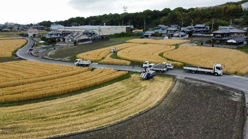 M:あと、収穫時期(5月頃)の、農地一面が黄色に染まる景観美も魅力だと思います。ずっと愛媛に住んでいる人は馴染みの風景かもしれませんけどね。麦の収穫時期を麦秋(ばくしゅう)なんて言いますが、愛媛では、米の収穫時期(10月頃)と合わせて、1年で2回秋の風景を楽しめるわけなんです。
