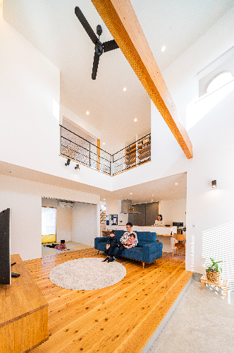 リビングとつながる土間スペースはご夫妻の念願。これだけの開放感を生み出しつつ、断熱性・気密性に優れた工法で冬でもあったか!