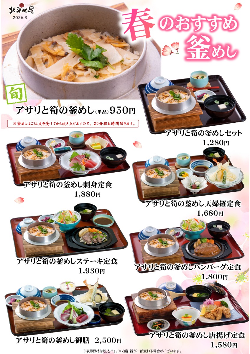 【北斗七星】アサリと筍の釜めし、桜鯛など「春のおすすめメニュー」実施中!