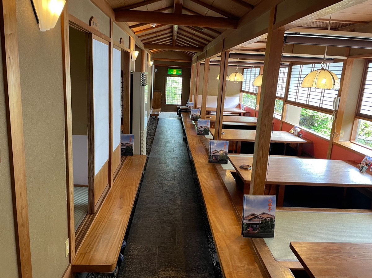 「八勝亭 東予店」の敷地面積は1500坪以上あり、広々とした空間で入口は緑に囲まれ、優雅に泳ぐ鯉が出迎えてくれます。店内にはテーブル席、掘りごたつ席、個室の座敷があり、特に掘りごたつ席はファミリー向けで人気です。中庭の自然光が差し込む席もあり、小さな子ども連れ向けの個室も用意されています。全350席あり、3世代で楽しめるように老若男女問わず家族や友人、会食、法事の行事などニーズ合わせて食事ができます。