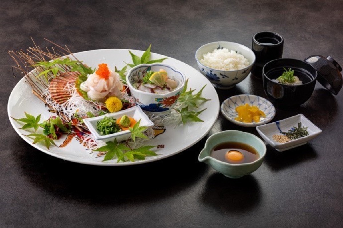 宇和島から直接仕入れた鯛をふんだんに使用した「宇和島風鯛めし」。職人がつくるこだわりのつけダレが美味しさの秘訣。小鉢・吸い物・漬物が付き、ごはんも3杯までお替り自由なのも嬉しいポイントです。