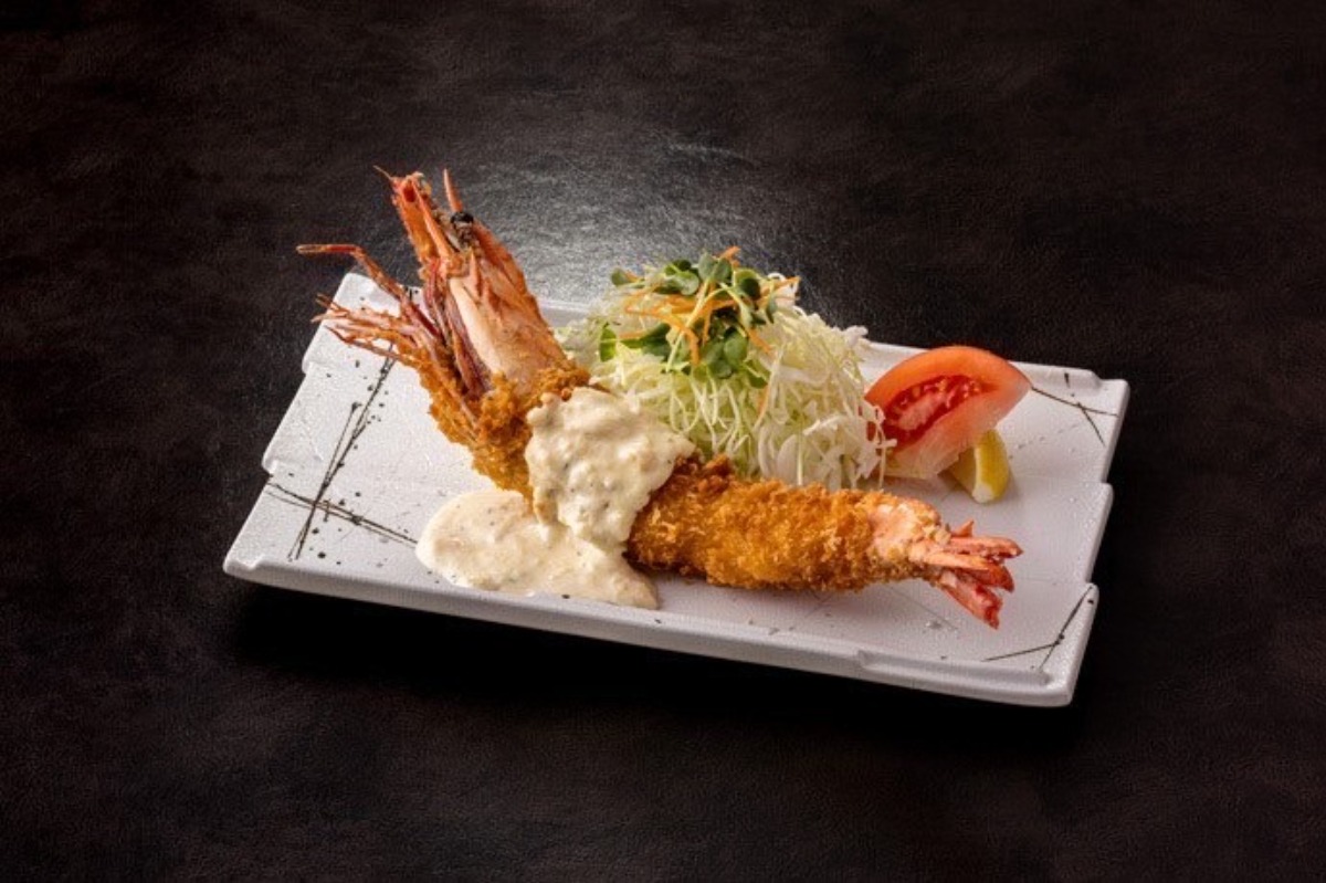 八勝亭名物「びっくりジャンボ天然海老フライ」(単品価格1,800円)! プリプリエビの魅力に心わしづかみ