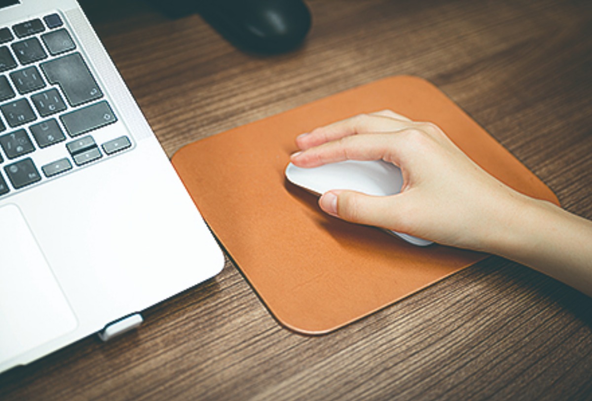 友人に贈り物でもらったマウスパッドです。革製で、使えば使うほど味の出るアイテムなので気に入っています。