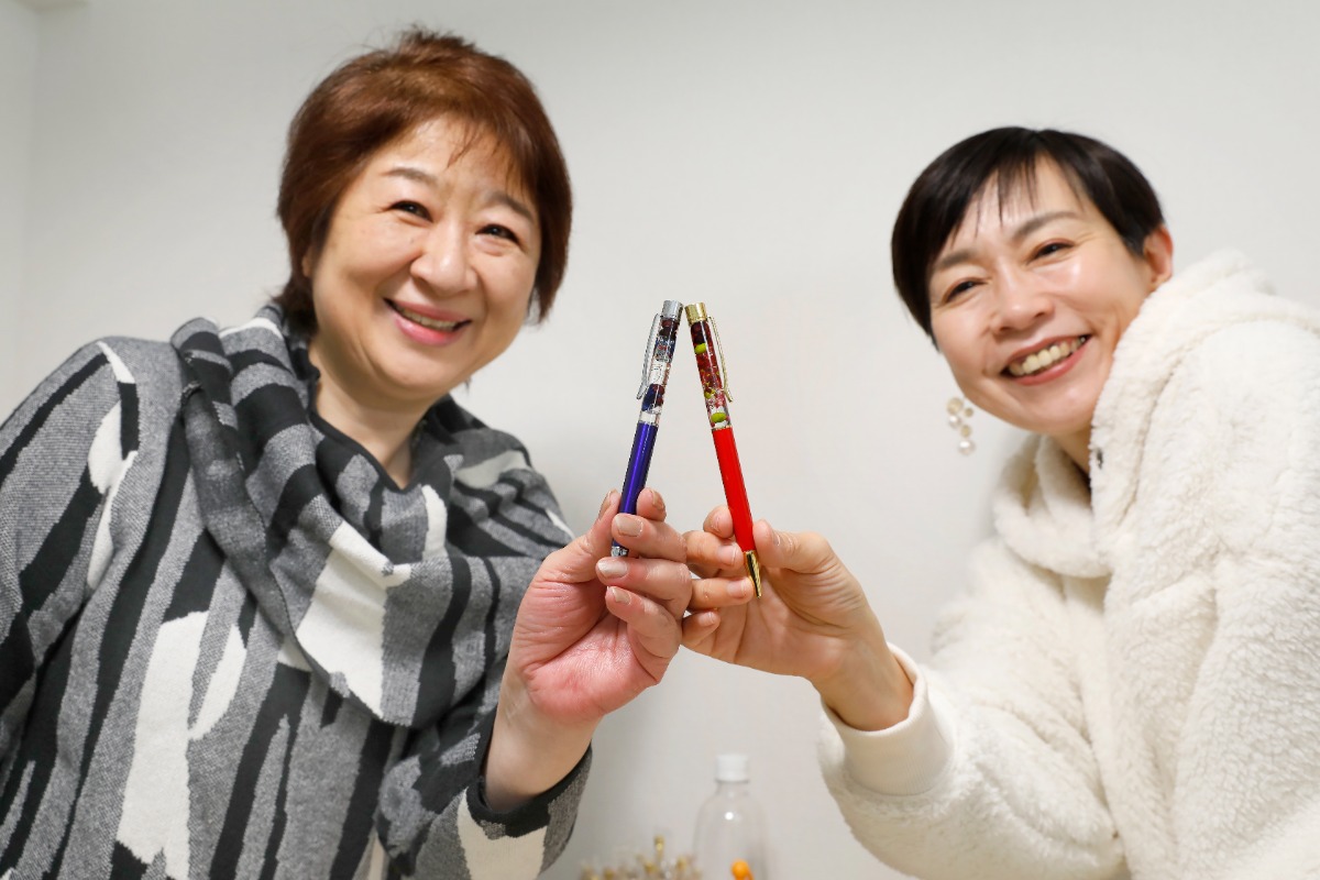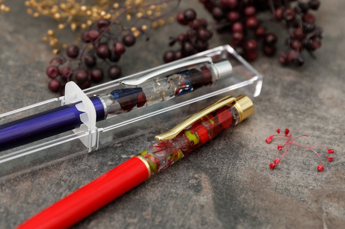 ドライフラワーなどを使って自分だけのハーバリウムボールペンを作ることができるワークショップ。