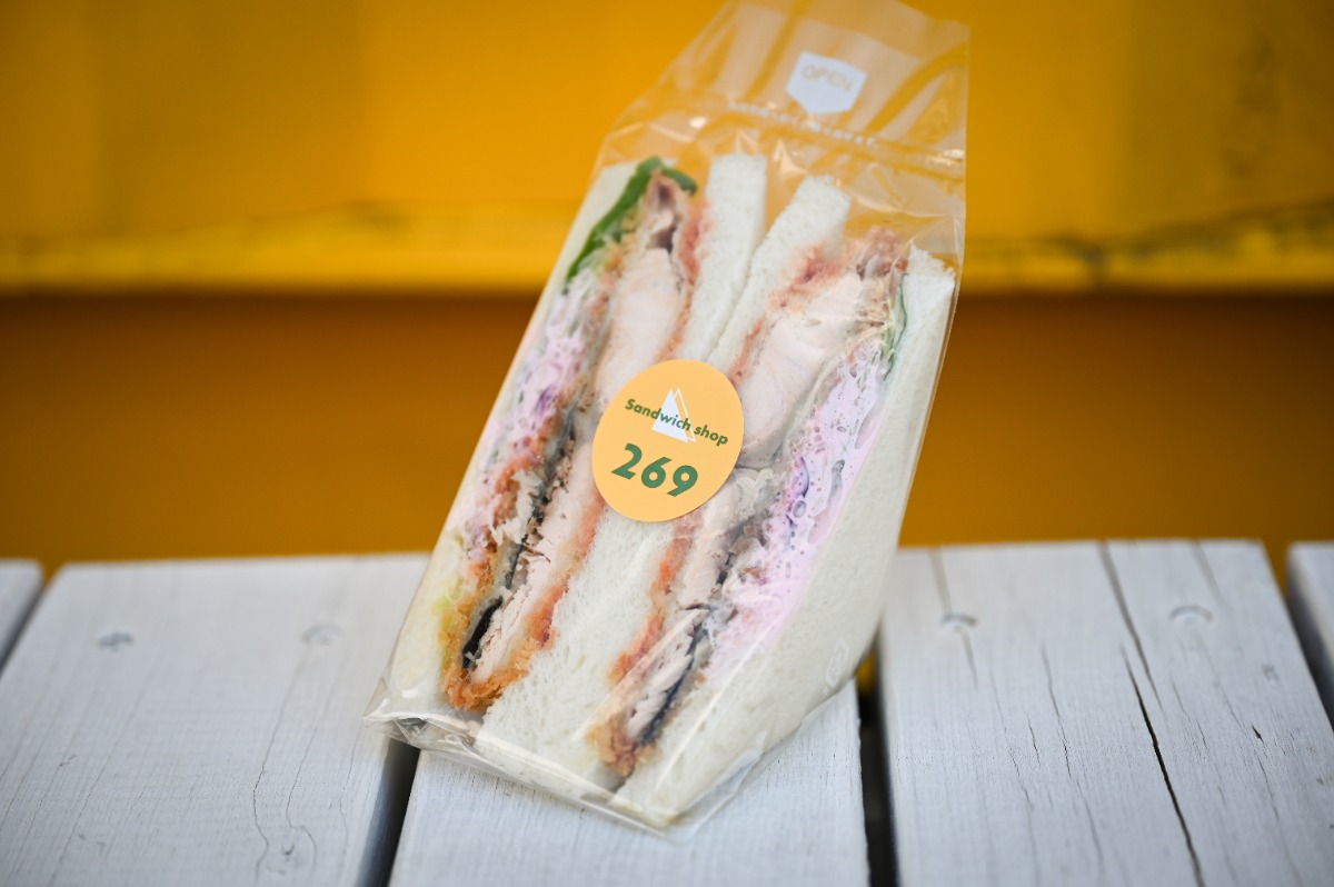 2023年4月にオープンした、元気カラーのイエローとグリーンのコンテナが目を引くテイクアウト専門のサンドイッチ店「Sandwich shop 269(ツムグ)」さん。サンドイッチ好きの店主が手掛けるサンドイッチは、20種類以上! ツナやタマゴなどの定番から、焼きサバや梅しそチキンなどのおかず系サンドまで揃っていて、迷いながら選ぶのが楽しいんです。