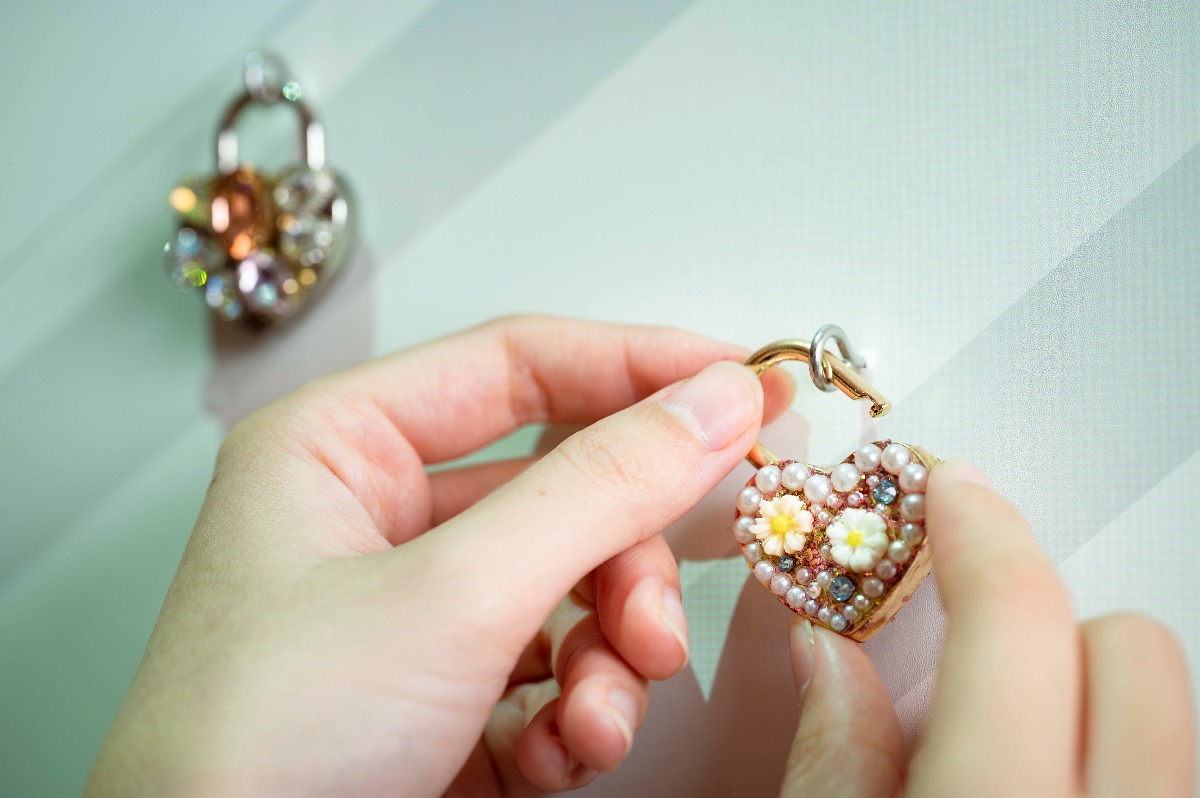 個性豊かな「LOVE LOCK」は、店内の壁に飾るときに、鍵と持ち主の情報を紐づけて登録する仕組みとなっている。