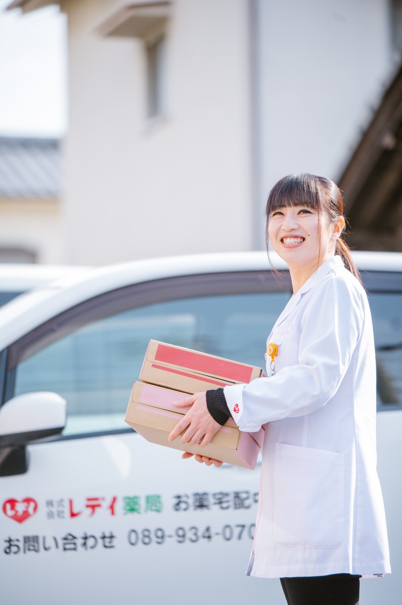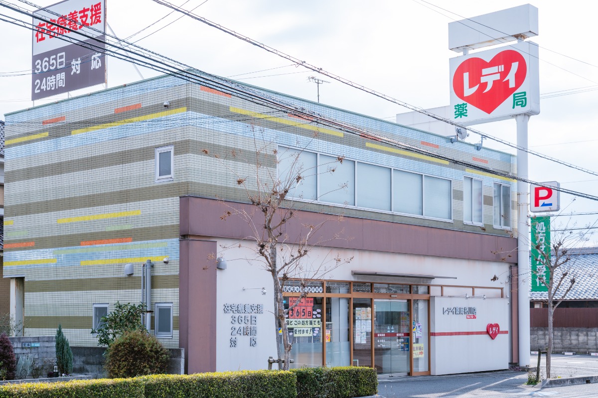 通常の調剤薬局営業のみならず、松山市の在宅療養支援における拠点薬局の役目も果たす「レデイ薬局拓川店」。