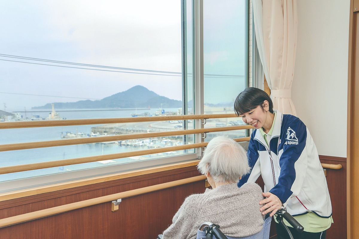 「あいじゅ祝谷」は、特別養護老人ホーム・グループホーム・介護付有料老人ホームの3つのタイプの高齢者施設とデイサービスセンターを組み合わせた施設。地域の高齢者のあらゆるニーズに応えながら質の高い介護サービスを提供している。