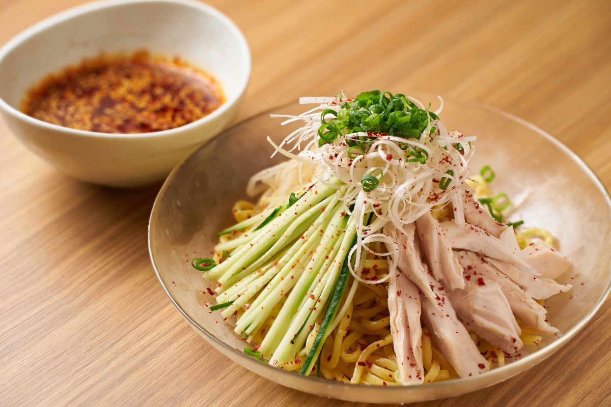 喉越しの良い特注麺が旨辛つけダレによく絡みます。低温調理でしっとり仕上げたささみの鶏ハムも美味。
