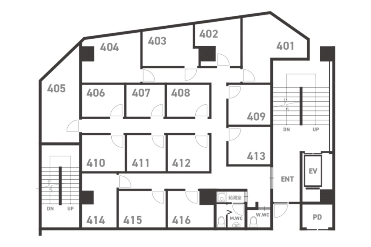 フロアと居室それぞれに鍵を設置しているので、個人情報を扱う方も安心。