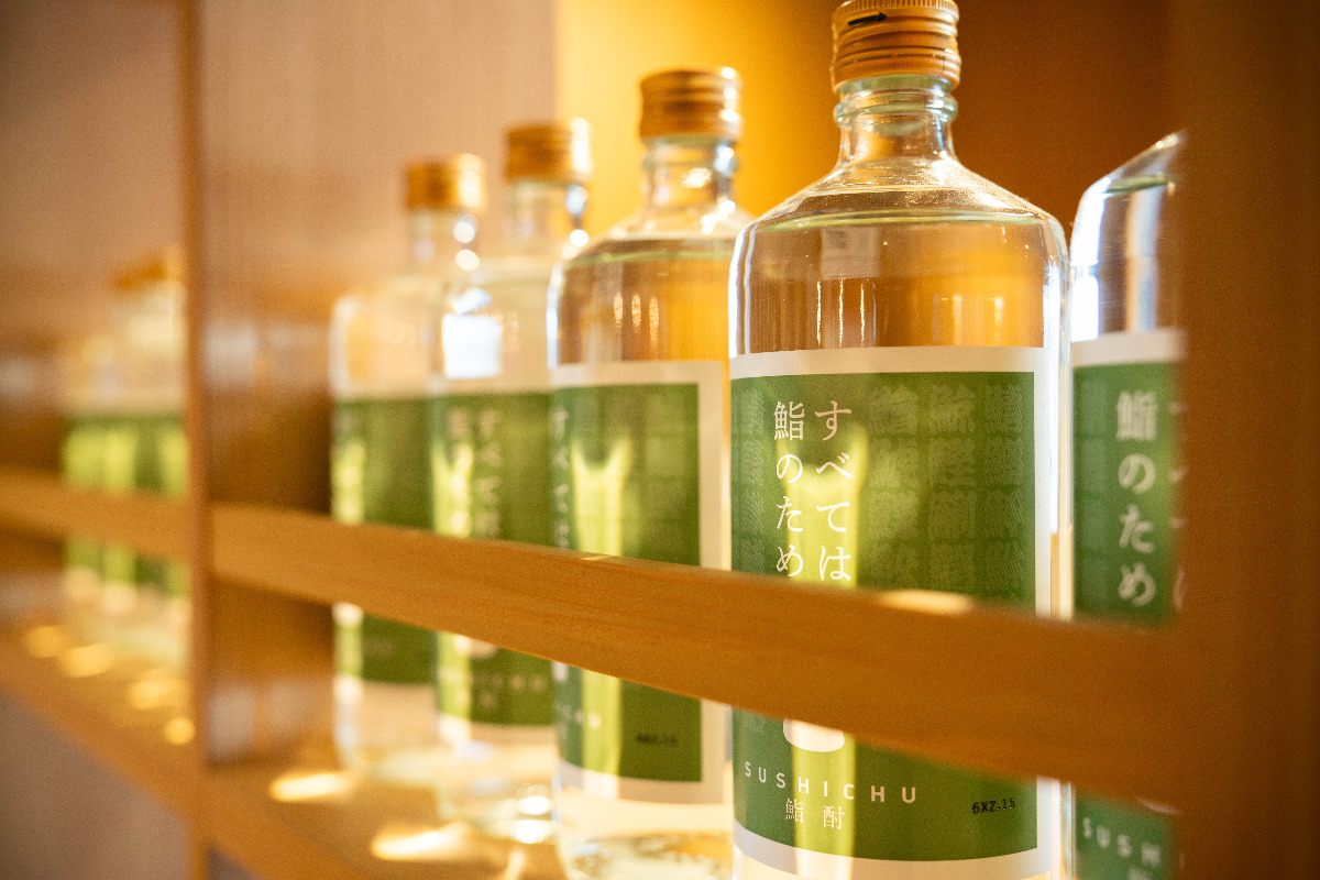 杉玉オリジナルデザインの焼酎「鮨酎」(ボトル 1,848円)も要チェックです。ボトルキープもOKですよ!