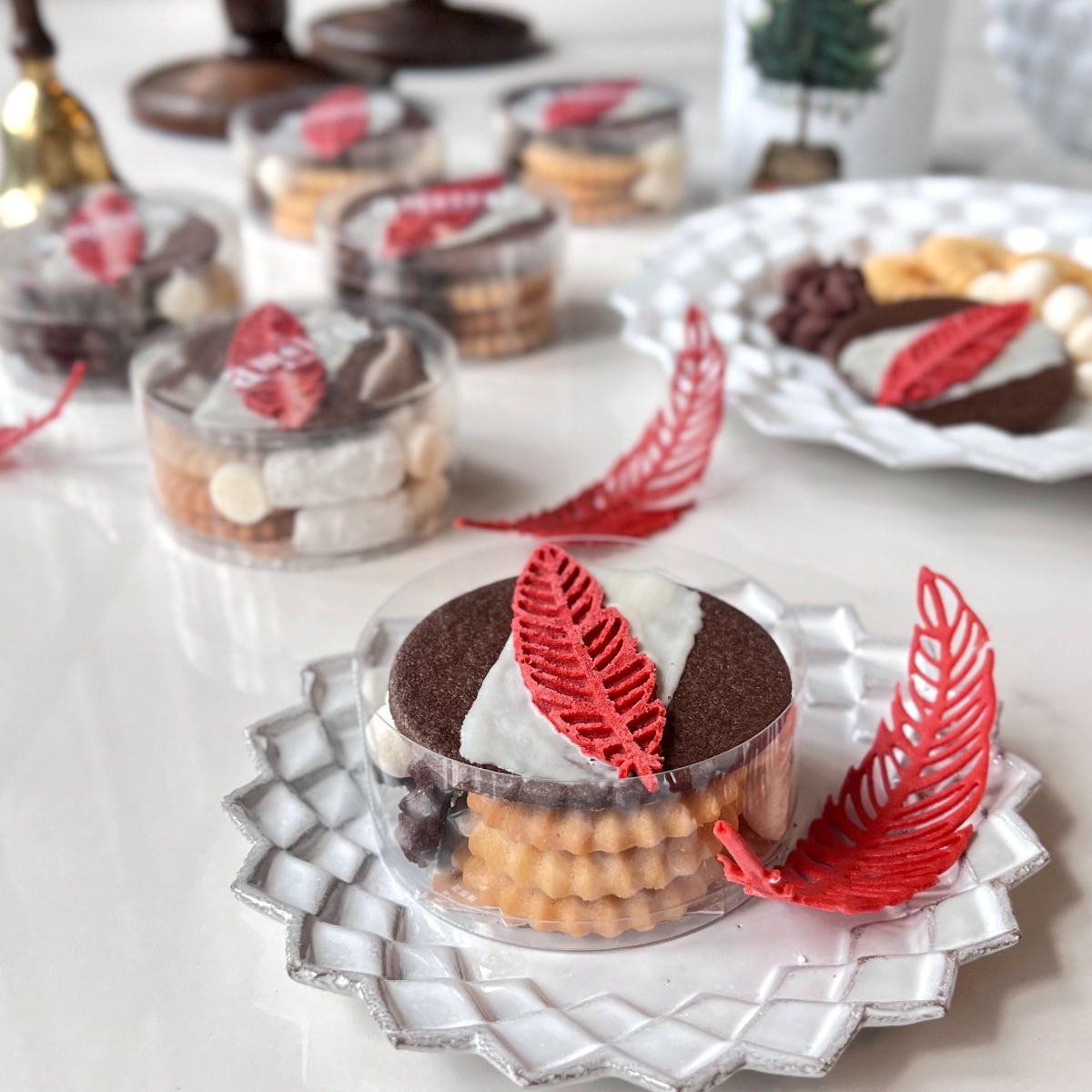 深紅の“羽根”モチーフのクッキーが目を惹く、クリスマスシーズンにぴったりのコロン。
