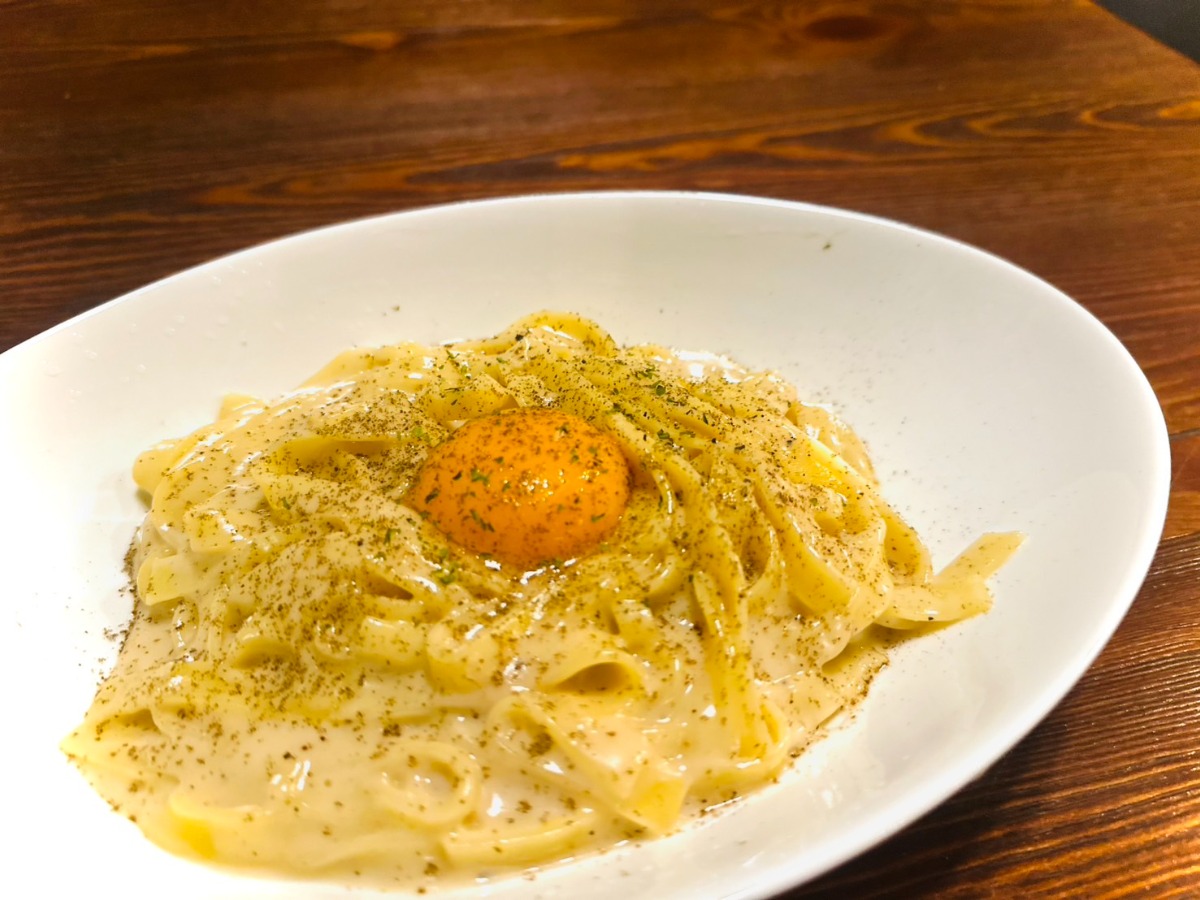 「カルボナーラ」(1,280円)は、夜のイタリアンメニューの中でも人気の一皿。濃厚なチーズとクリーミーなソースがパスタに絡み、まさに王道の味わい。コクがありながらも後味はさっぱりしていて、ディナーの〆にもぴったりです。大人も子どもも満足できる本格派の一品をぜひお試しください。