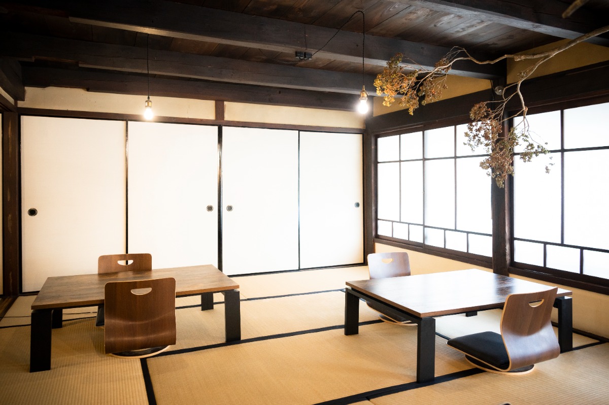 古民家を生かしたお店ならではの、畳敷きになっている癒やしの空間で、心地よいひとときをどうぞ。