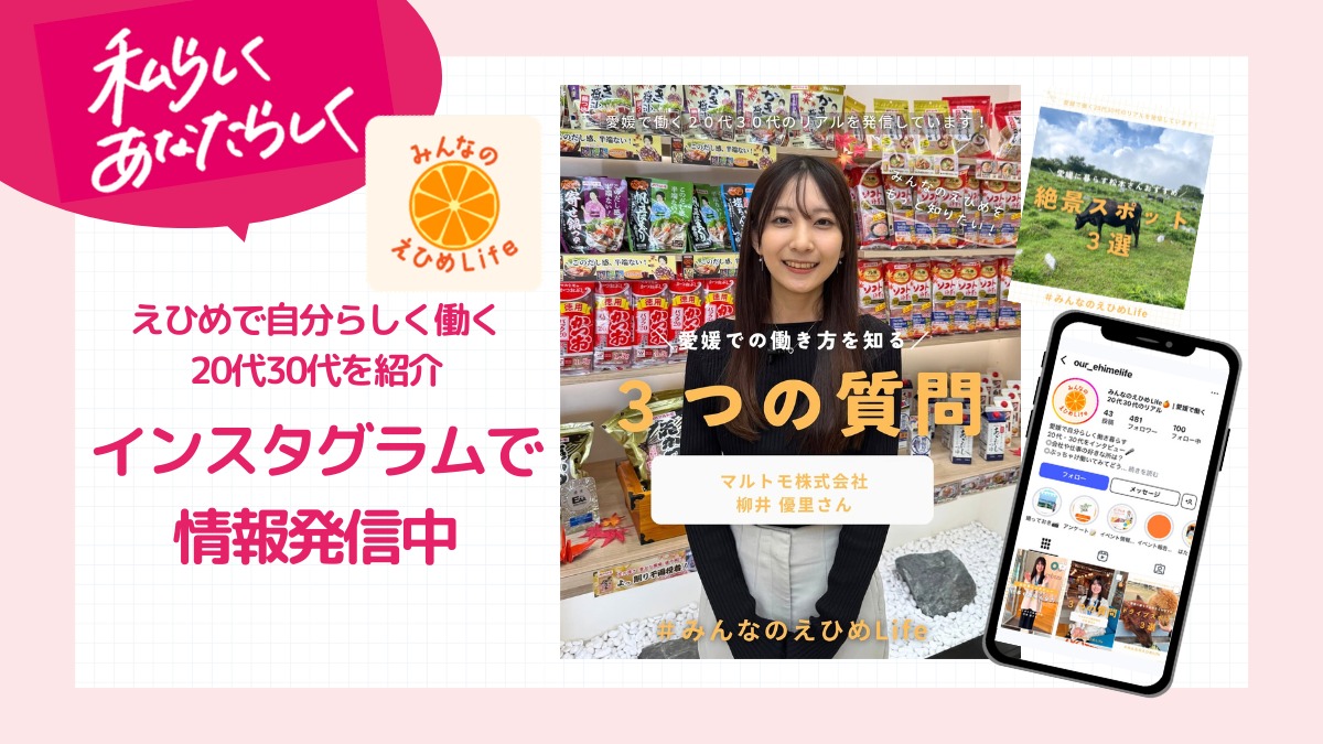 ジョブカフェ愛workでは、『愛媛で自分らしく働き暮らす』をコンセプトに、Instagramアカウント「みんなのえひめLife」を運営しています。
