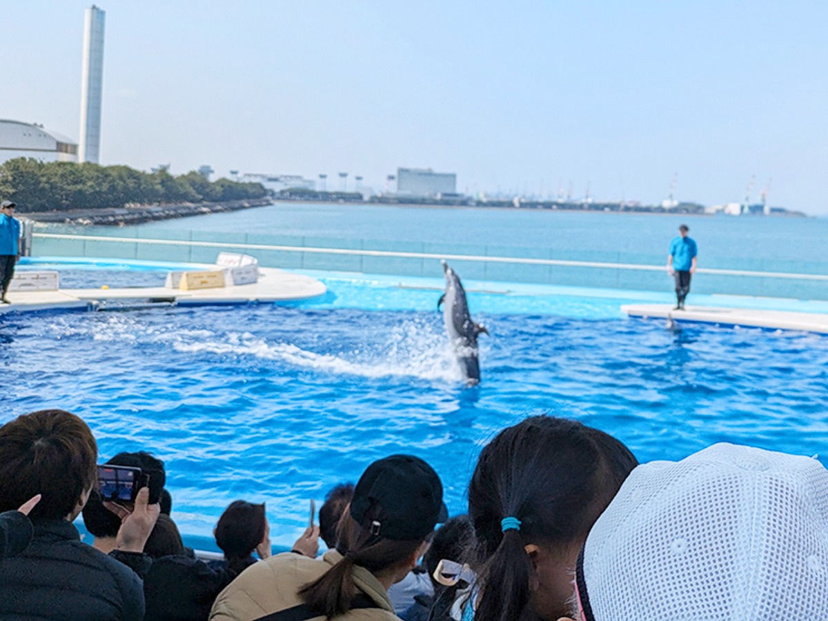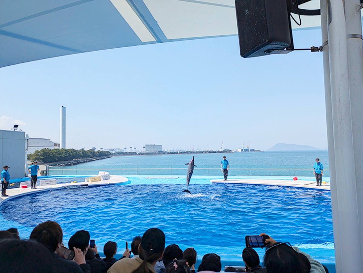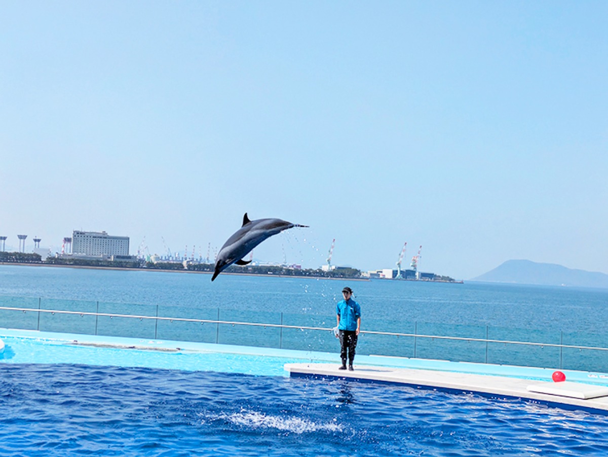 瀬戸内海を背景にしたイルカたちのジャンプはとても綺麗で迫力がありました。