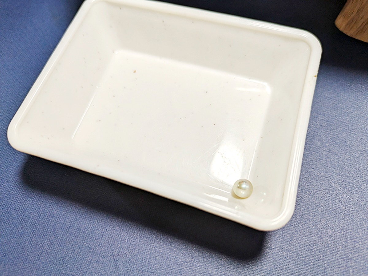長女ちゃんが選んだ貝は小さめだったんですけど、貝が大きかった方が大きい真珠が出てきたのかな…?