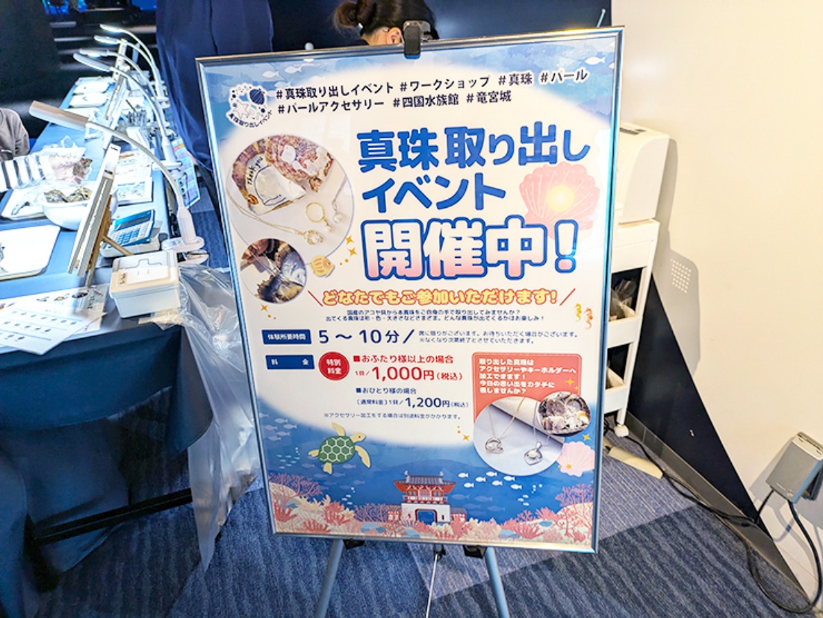 参加料1,200円(1人の場合)で、取り出した後に真珠を付けるジュエリーによって、また追加料金がかかってきます。