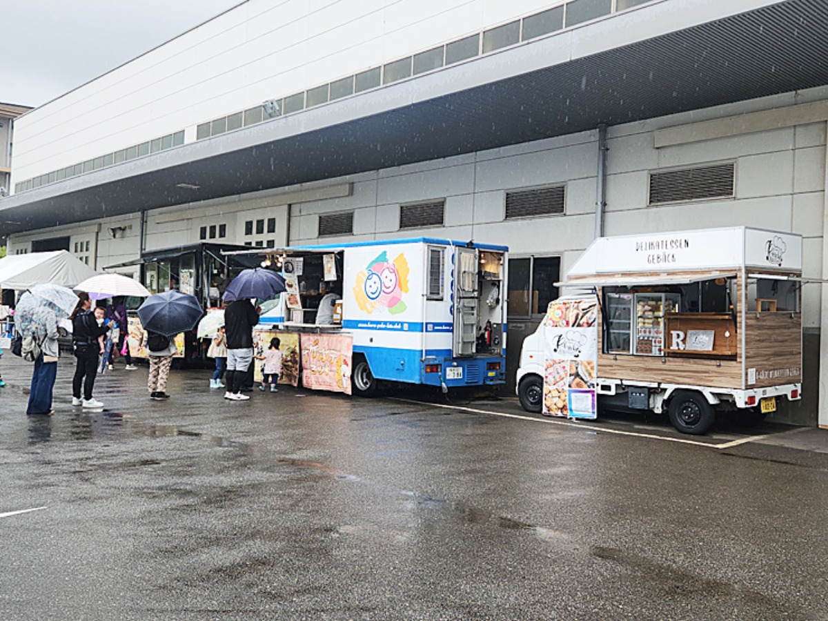 キッチンカーがたくさん並んでいたり、うちわのぬり絵や輪投げ、射的、スーパーボールすくいなど子どもが楽しめるブースがいっぱい!