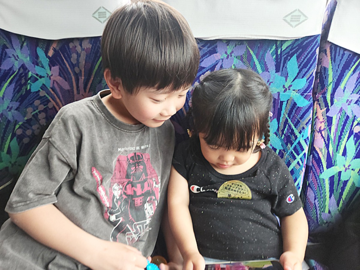 移動中はお友達の妹のお世話も。2年前よりも成長を感じます!