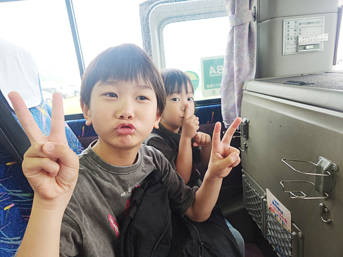 バスに乗るのも楽しい兄弟♪既にわくわくが止まりません!