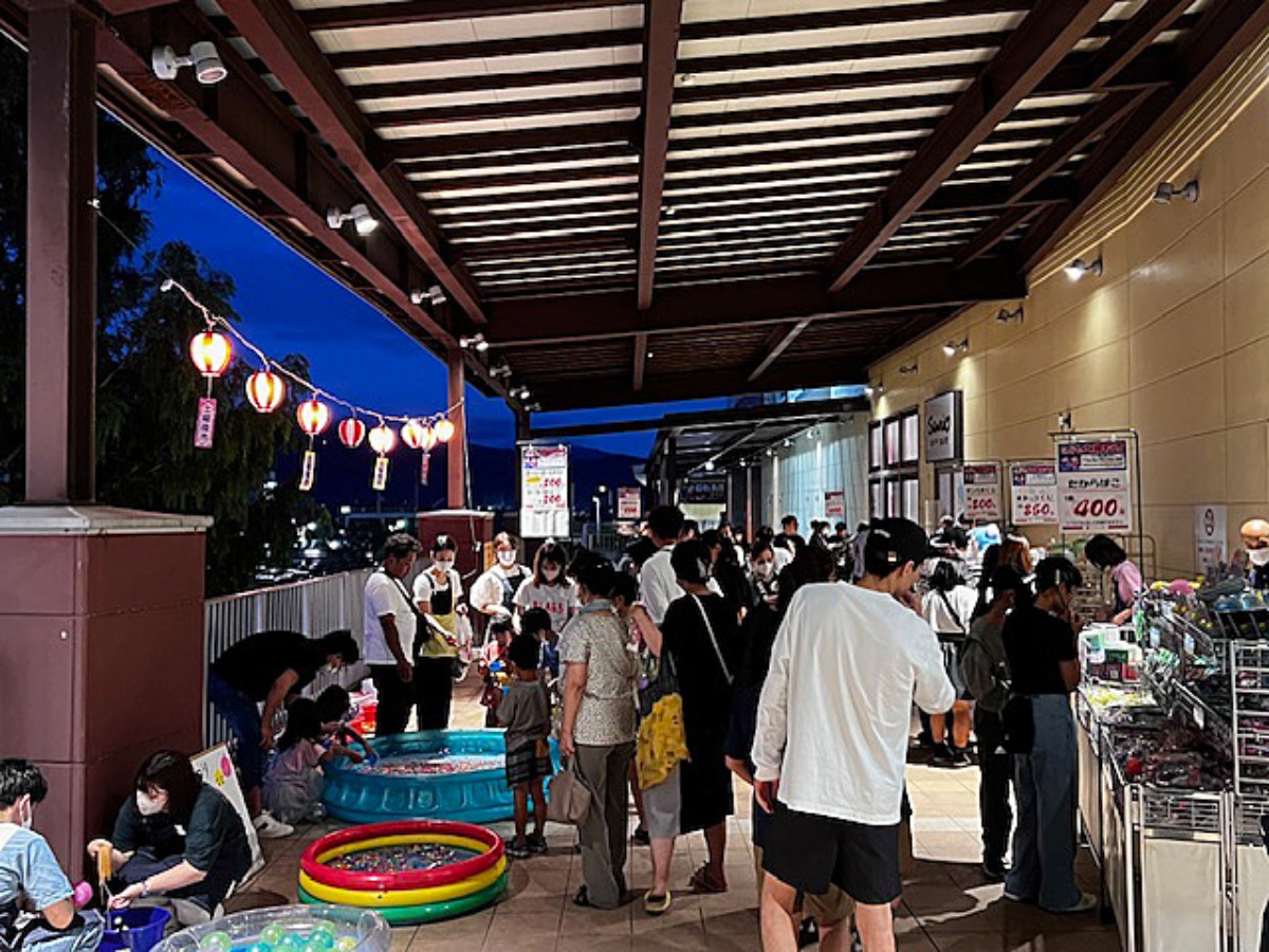 昨年も好評だった「ソユーフォレストハンター」のお菓子すくい、「ひごペットフレンドリー」の金魚すくいややどかり釣り、「だがし家ちゃりんこ」のスーパーボールすくいなど、夏祭りならではの遊びがいっぱい。