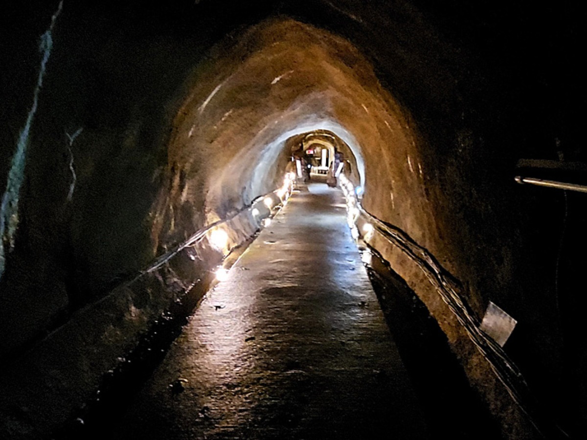 坑道内には水が流れていて、ひんやりとした空気が広がっています。