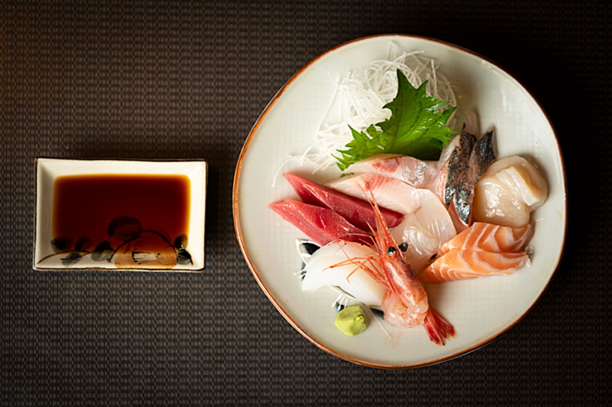 新鮮な8種類の刺身を贅沢に盛り付けたひと皿。時期によって内容も変わる