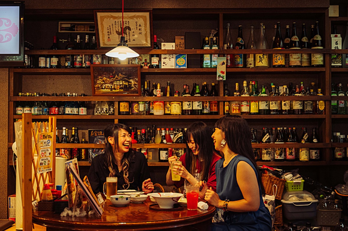 壁一面には、酒瓶がずらり。年齢や性別問わず楽しめる、気取らない空気が心地良い