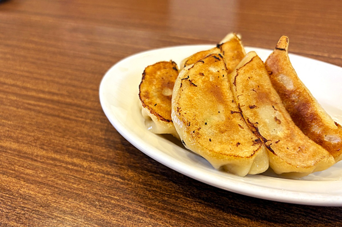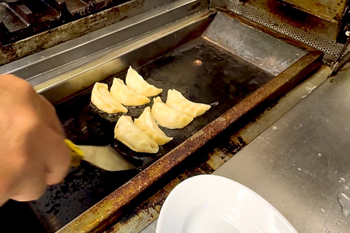 鉄板で蒸し焼きされる餃子は、根強いファンが多いお店の看板商品。