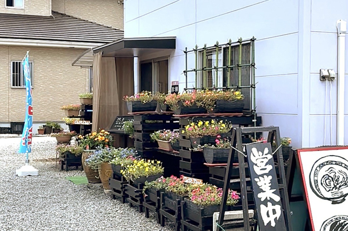 お店の前には、女将さんが育てるお花が色鮮やかにお出迎え。