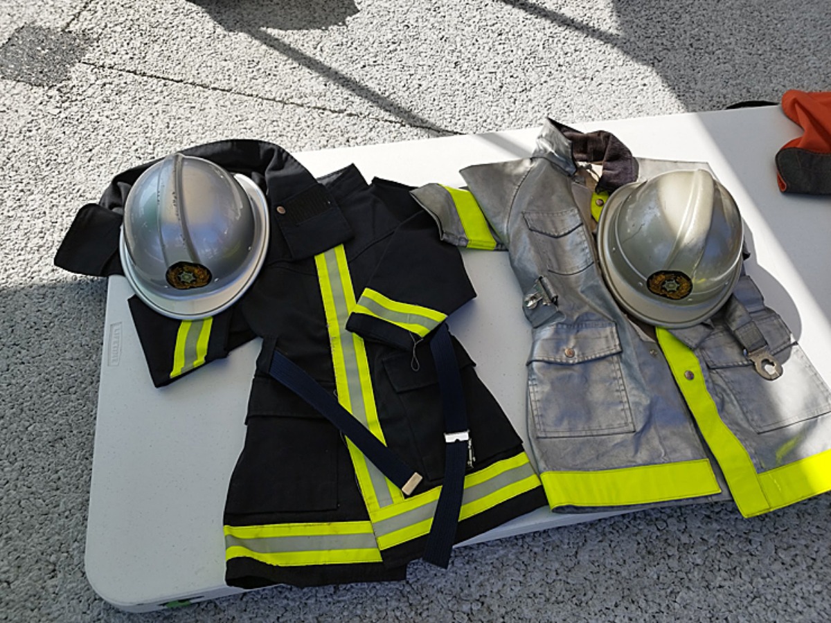 実際に消防隊員さんが着ているものと同じ素材で作られた、子供サイズの防護服・ヘルメットが着用できるとのことで、会場には小さな消防団員の姿を何人も目撃することができました。