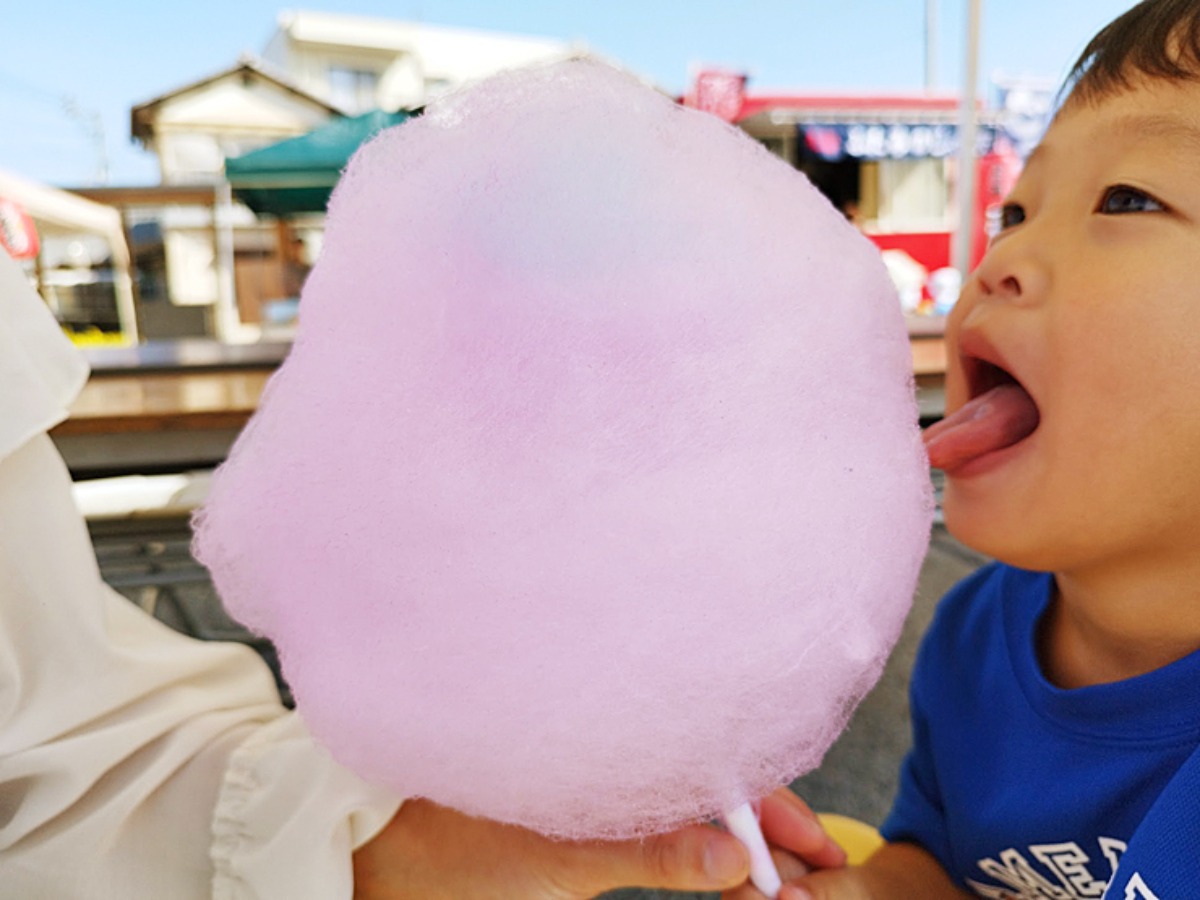 息子の顔の倍はありそうな大きなわた菓子をペロリ。