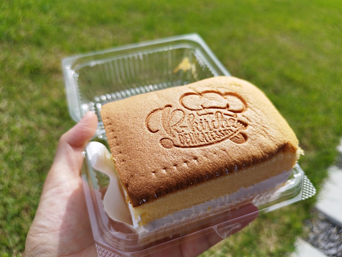 ふわふわの台湾カステラ。焼き印がオシャレです。