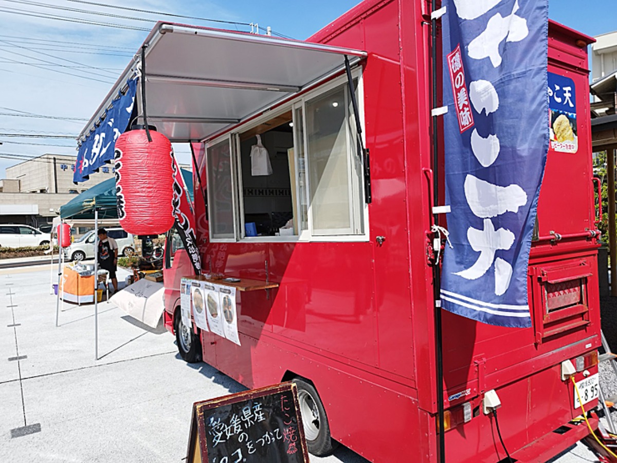 美味しそうな食べ物がいろいろ並ぶ中、どれにしようか迷いつつ台湾カステラにフルーツサンド、じゃこ天とたこ焼き、にんじんケーキなどを購入。
