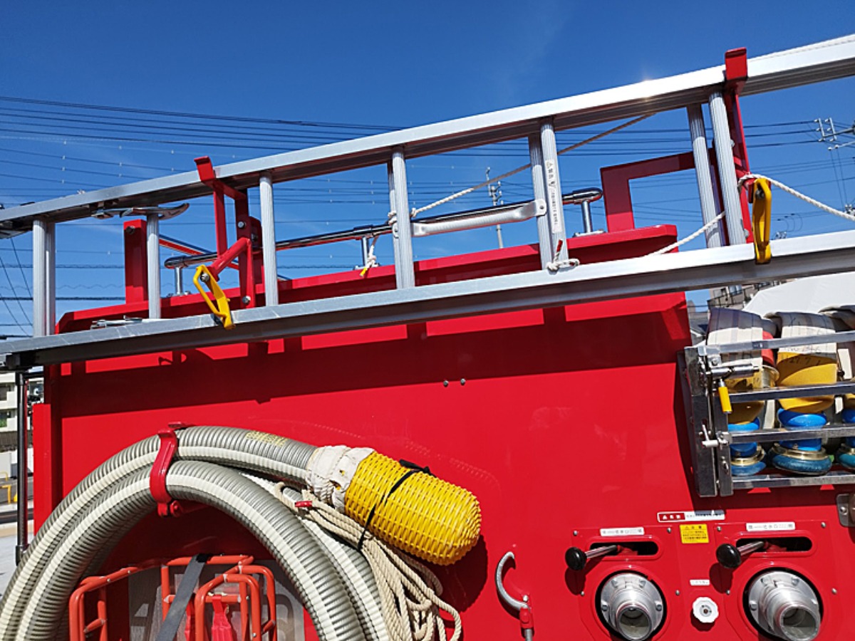 消火用の放水ホースも持たせてもらえました!ズシリと重みがありますね。