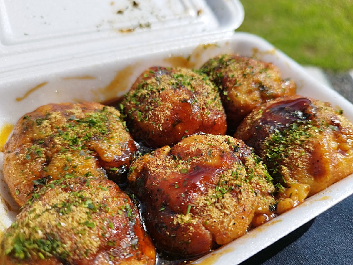 アツアツのたこ焼きにじゃこ天、クリームたっぷりのフルーツサンドにふわふわ生地が癖になる台湾カステラも美味!どれも最高でした。
