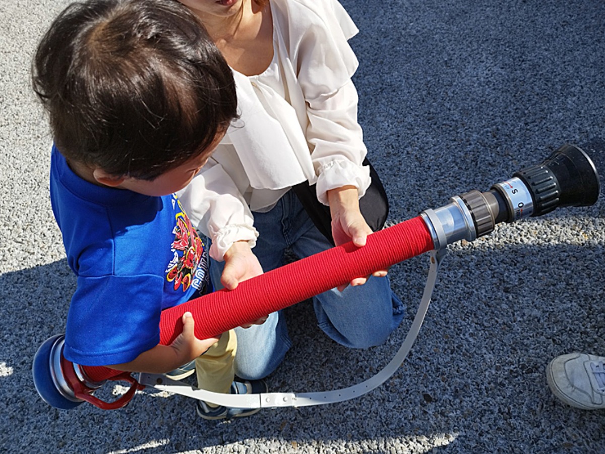 消防車に乗ったり、放水ホースを持たせてもらったり、防護服を着てみたりと、子供たちにはその1つ1つが貴重な体験になります。