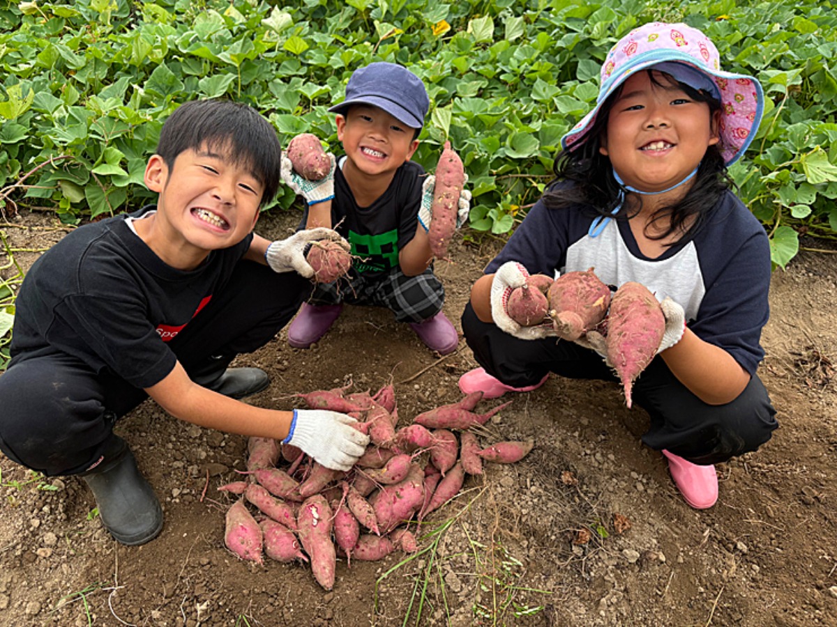 たっぷりとれたお芋を手に「来てよかったね!」と家族みんなが大満足。