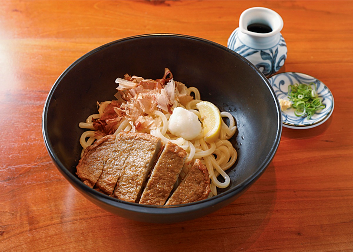 讃岐うどんとは異なり、喉越しがつるりとした少し柔らかめの麺と、ほのかに甘みを感じる優しい味わいが特徴だ。