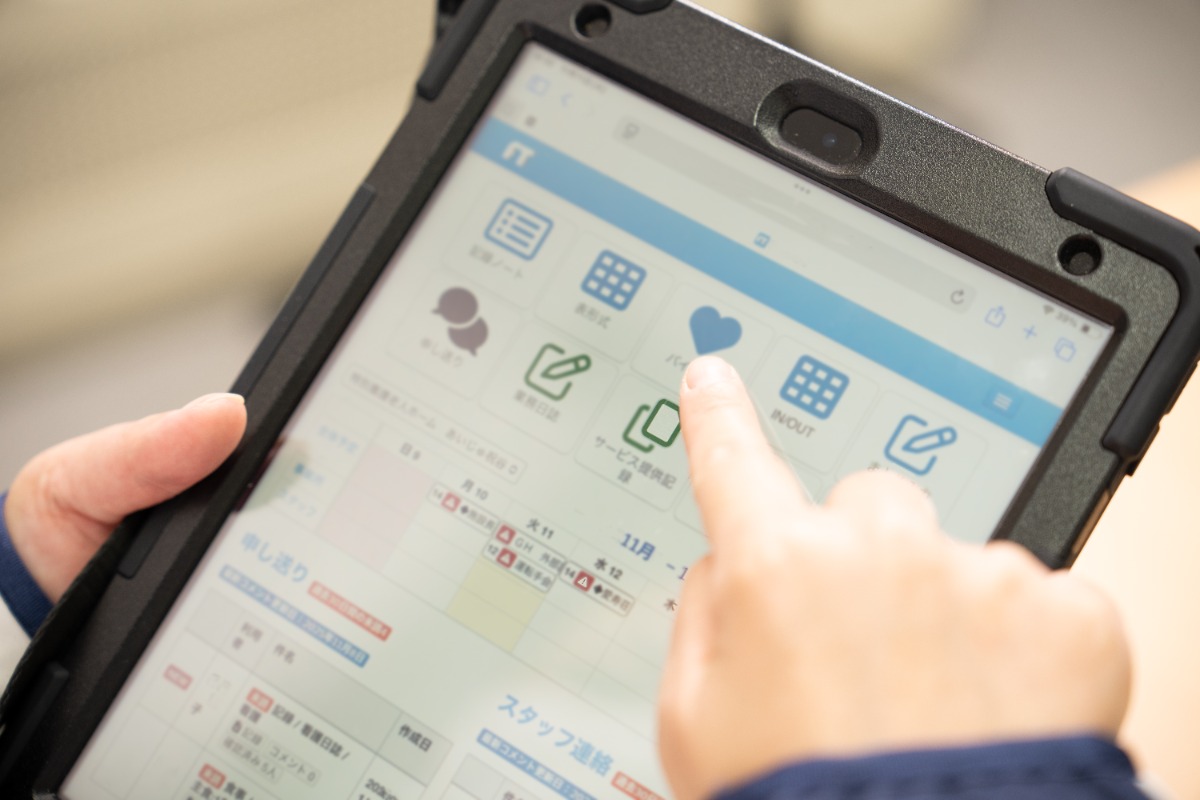 現場スタッフ・看護師・医師との連携は密で、変化に気づいた時にはすぐ共有し対応できる体制が整っているという。ICTの導入により記録業務の効率化も進んでおり、また、休暇希望も通りやすく、子育てや家庭との両立にも理解がある環境だ。