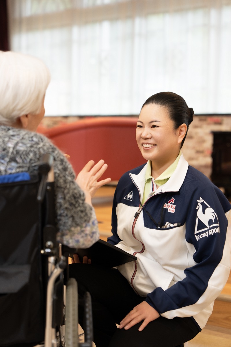 2002年入職。介護職として経験を積み、介護福祉士・ユニットリーダー研修を経てケアマネジャー資格を取得。