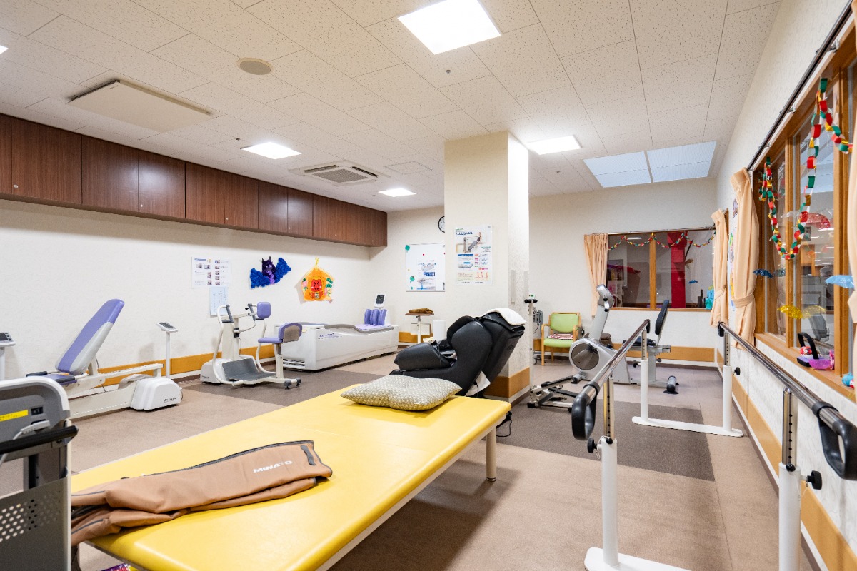 レッグプレス、ローイング、自転車型エルゴ、低周波、ウォーターベッドなど設備が充実。作業療法士による個別プログラムで、無理なく続けられるリハビリが提供されている。