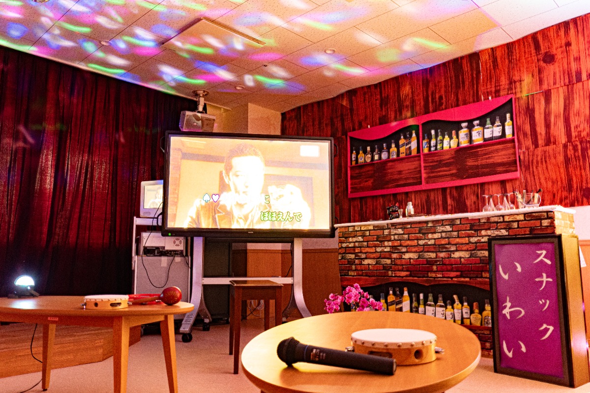 スナック風のカラオケルームなど“本物感”のある取り組みを実施。利用者の希望に応えようとアイデアを出し合い、一体感のある時間を職員と共に楽しめるのが大きな魅力。
