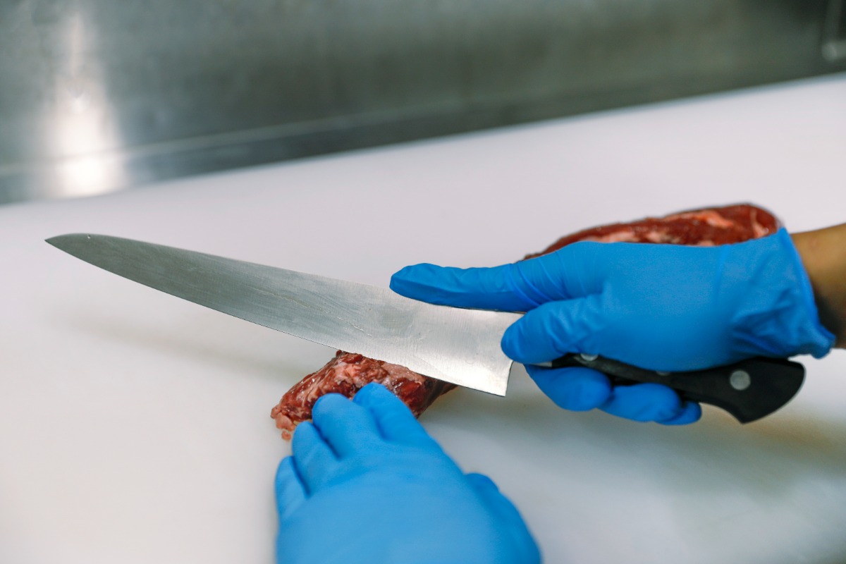 肉の加工時に毎日使用している自分専用の包丁。切れ味を良くするために、お手入れもしっかりとしています!