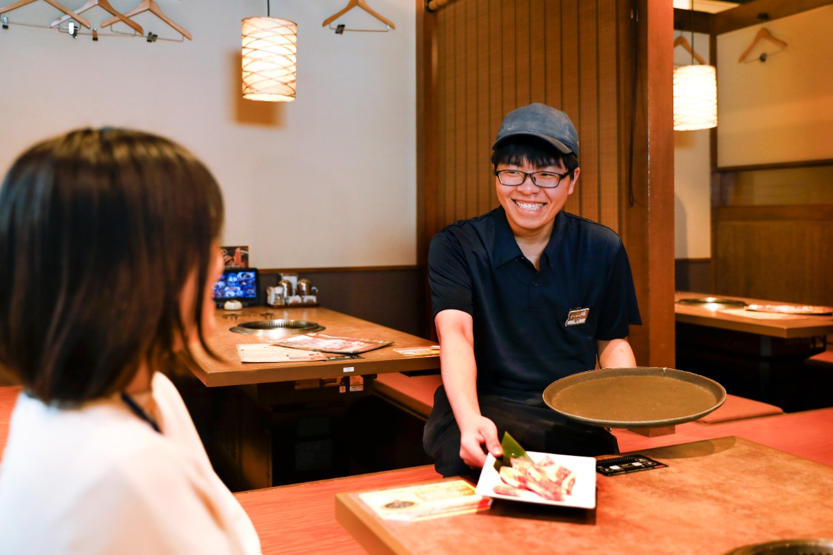 入社2年目、オールマイティに業務をこなす堀元さん。人と話すことが大好きで、顔と名前をすぐ覚える特技もあり、常連客には積極的に声掛けも行っている。
